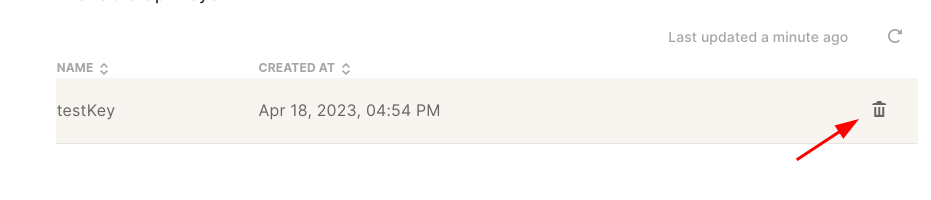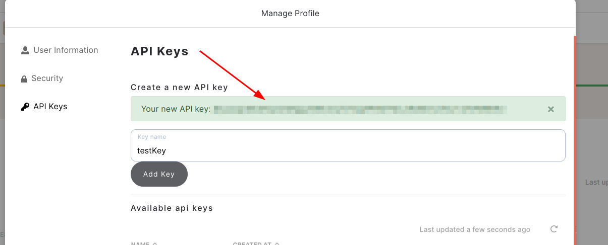 Select “API Keys” in the menu, name the key and click the “Add Key” button.