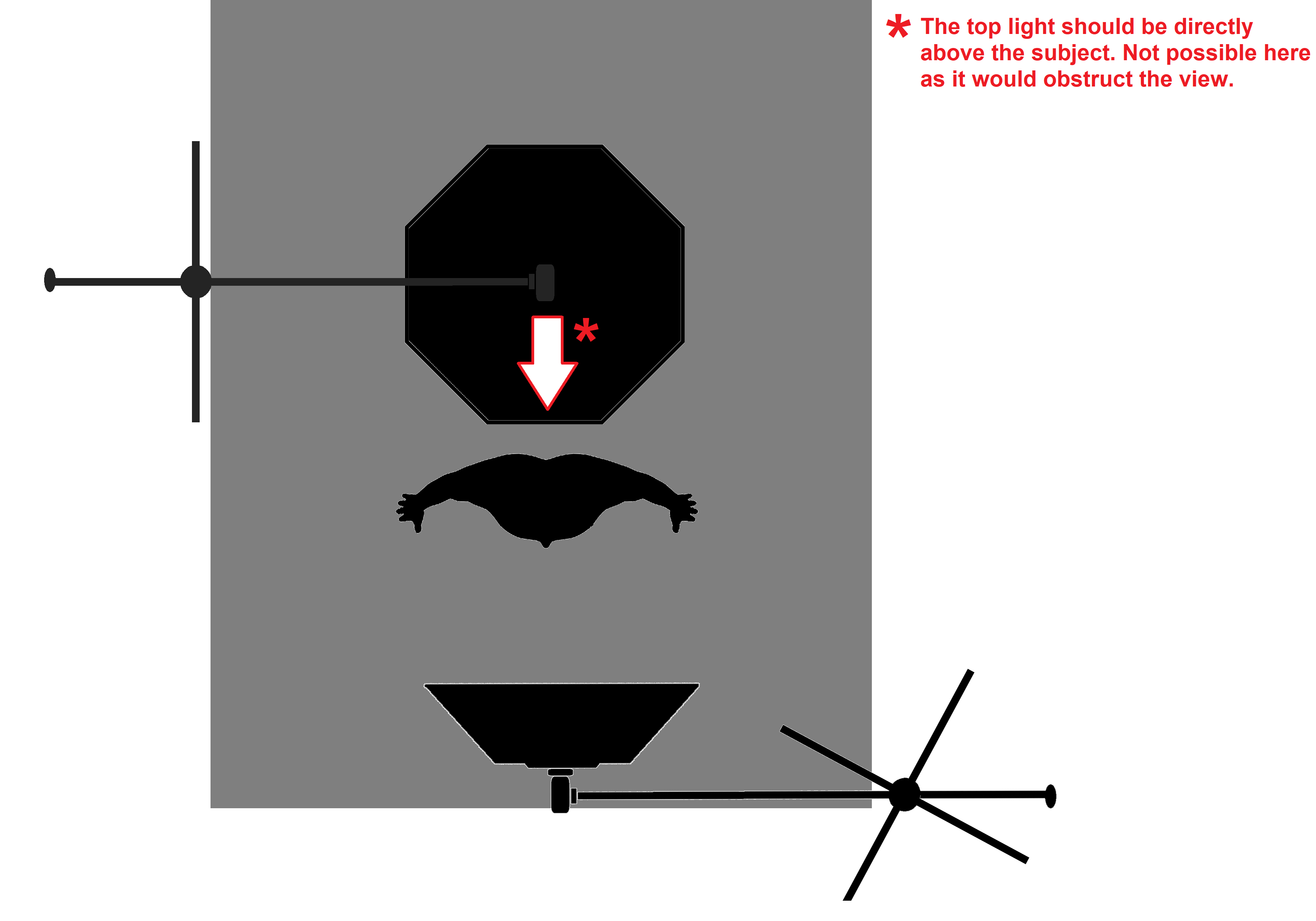 Background Light: The background lighting is not shown as it is a standard white background lighting set up and can be accomplished in several ways.