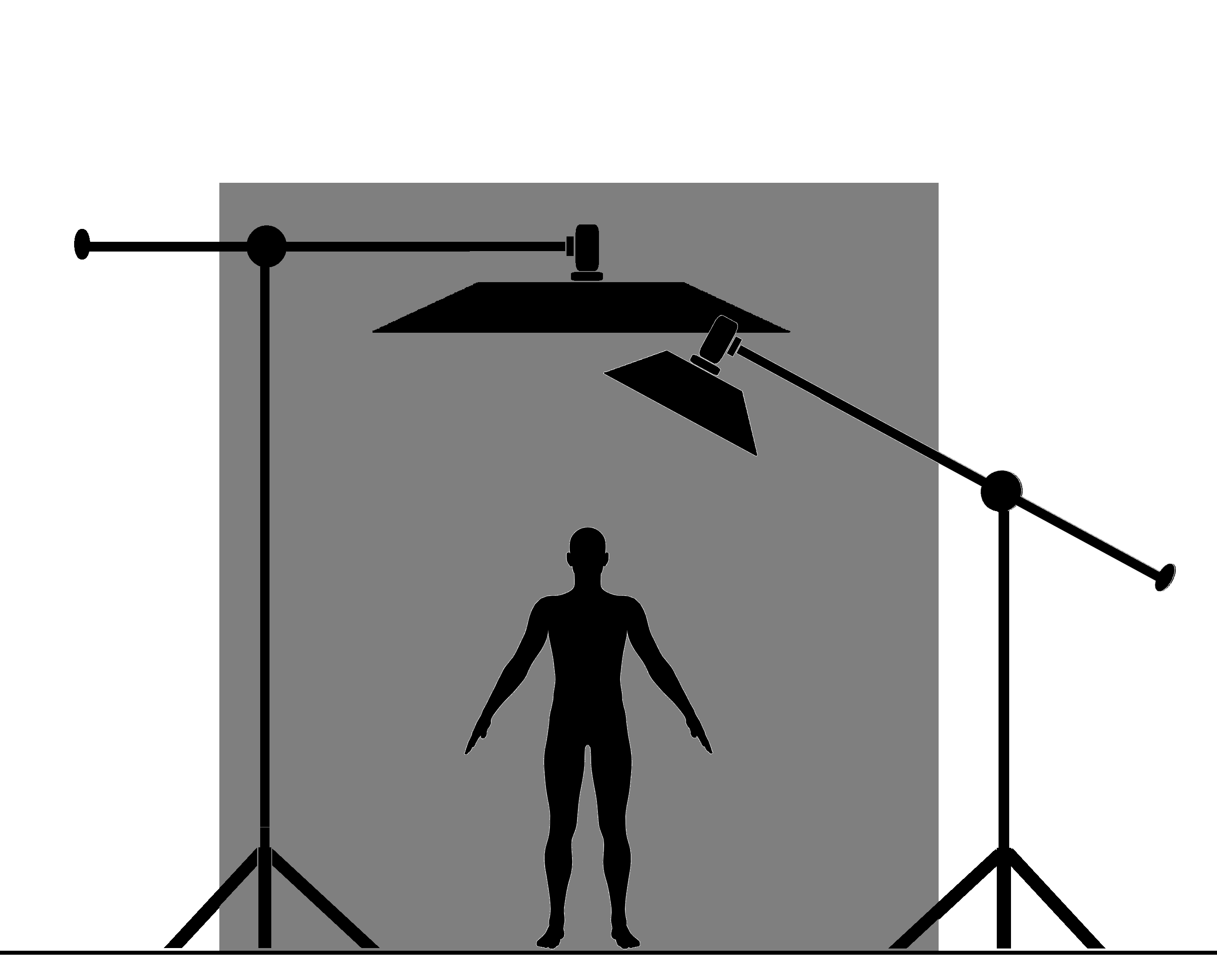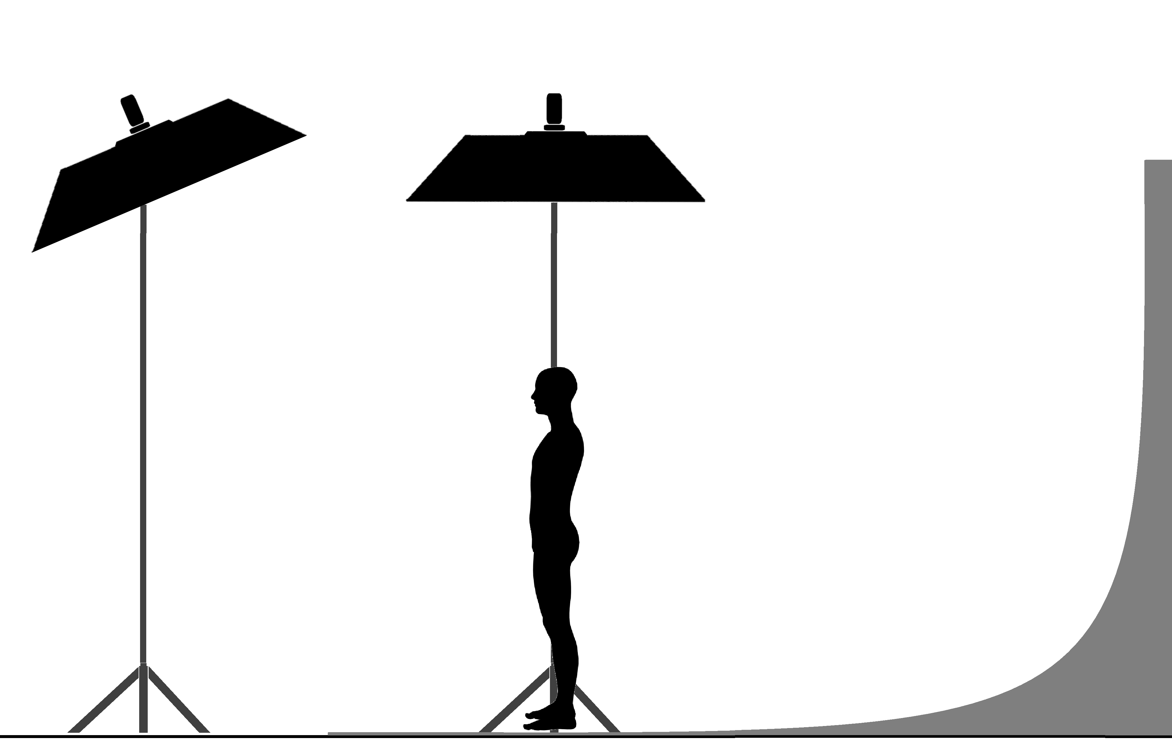 Background Light: The background lighting is not shown as it is a standard white background lighting set up and can be accomplished in several ways.