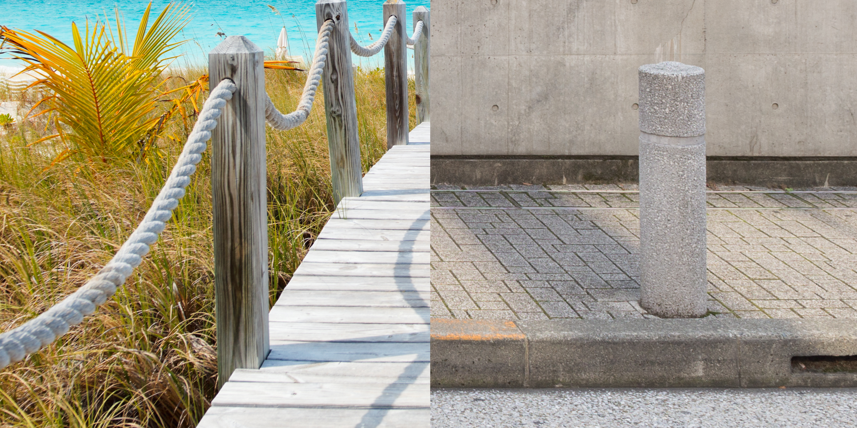 Example: Even though both objects below are poles, the one to the left is considered a complex object, while the one to the right is not. The reason for this is, that while the right pole can be built using a simple cylinder shape, the left pole must be accompanied by the ropes, which are more complex to build and overlap the pole behind. In this regard, the rope is what makes it complex, but the ropes are an inherent part of the poles.
