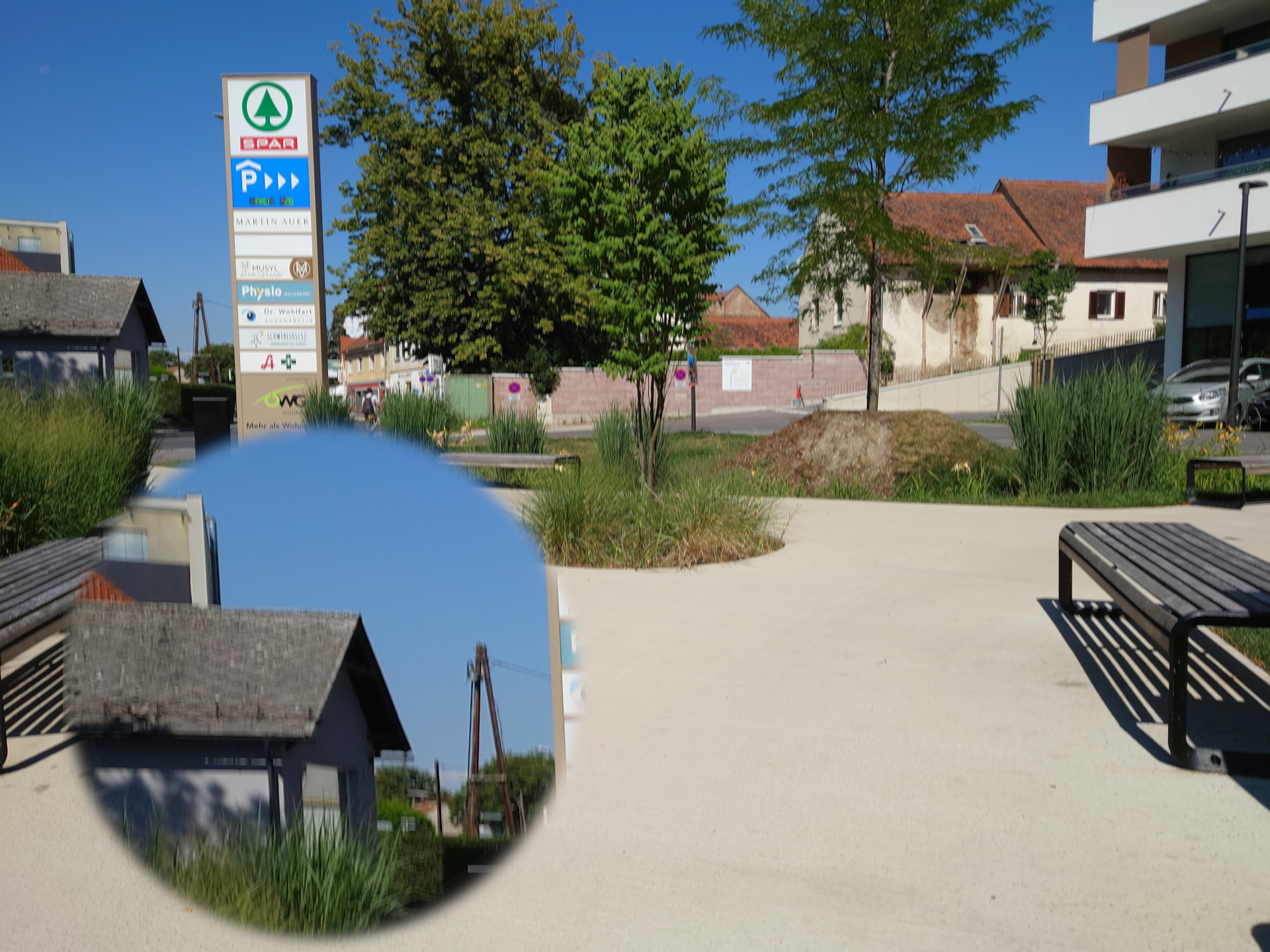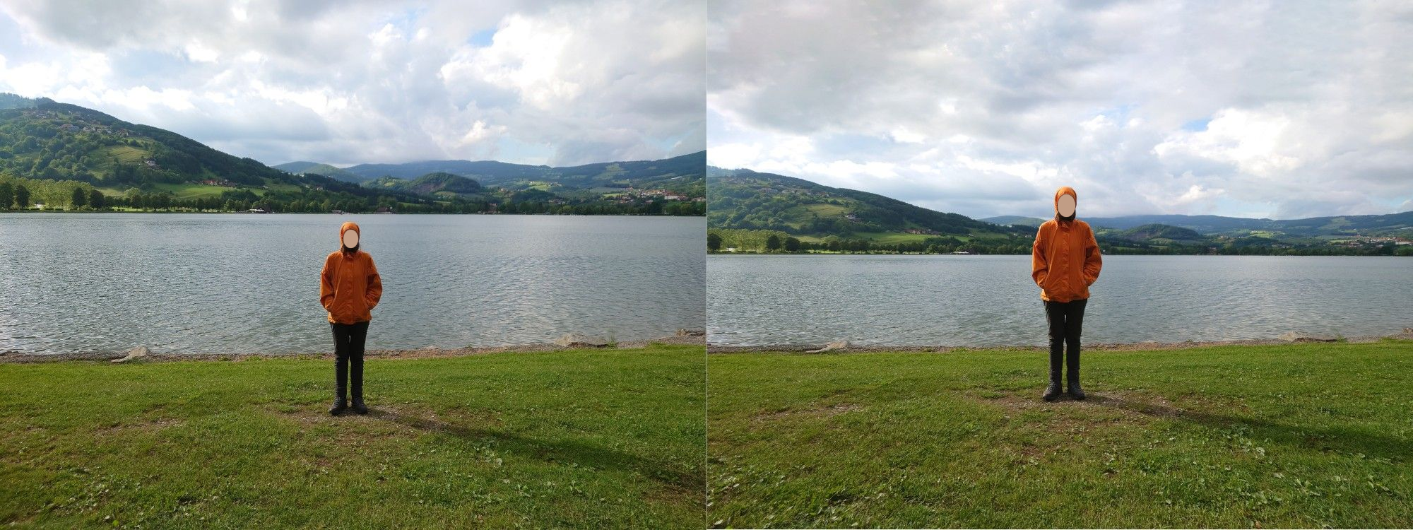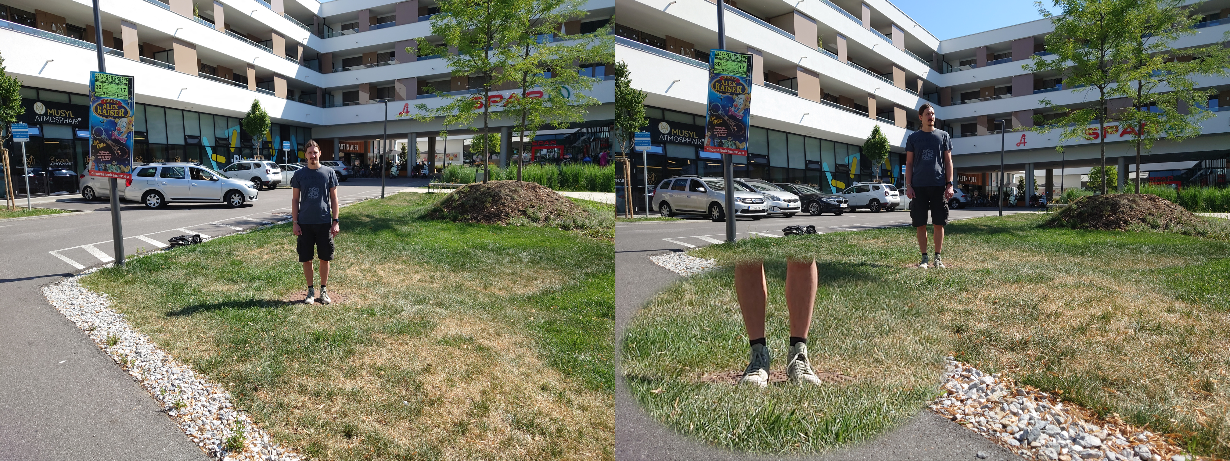 left: everything looks fine form afar, right: zoomed in we can see that some gras is in front of the shoes