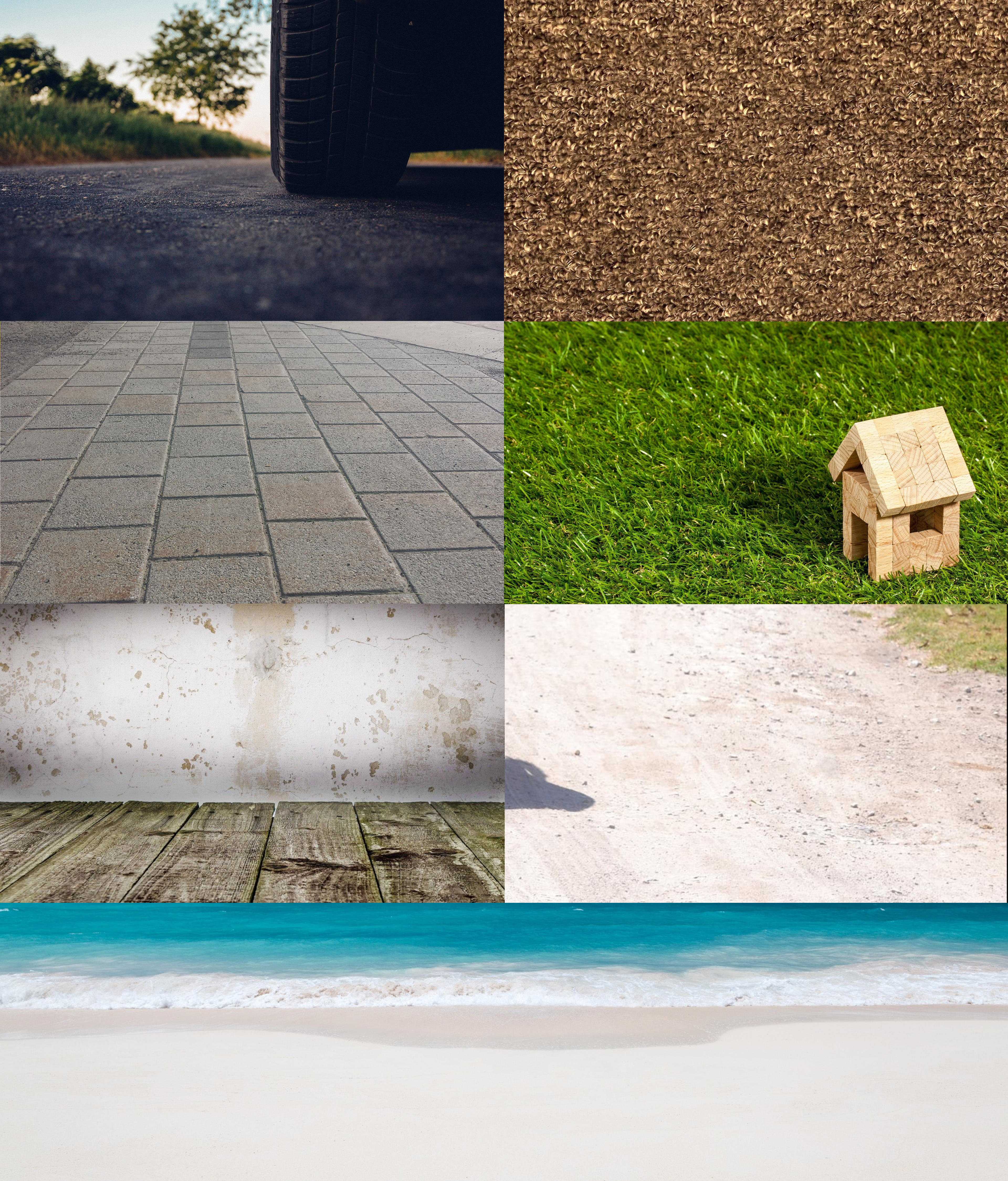 Natural surfaces, such as sand, puddles, high grass as well as other sinkable surfaces such as high fur carpets, are not accepted.