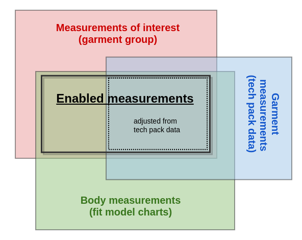 The set of enabled measurements for a garment depends primarily on its assigned garment group and the measurements defined in the fit model charts.