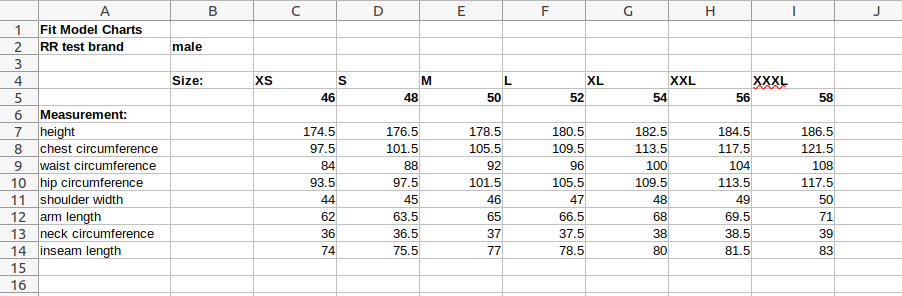 To enable the size recommendation & visualization feature one or more fit model charts are required. A fit model chart defines the ideal model measurements per size. It is therefore essential for a size recommendation, as it indicates the fit intended by the manufacturer. Furthermore, each garment has to come with a tech pack that defines data specific to the garment at hand and a reference to the corresponding fit model chart.