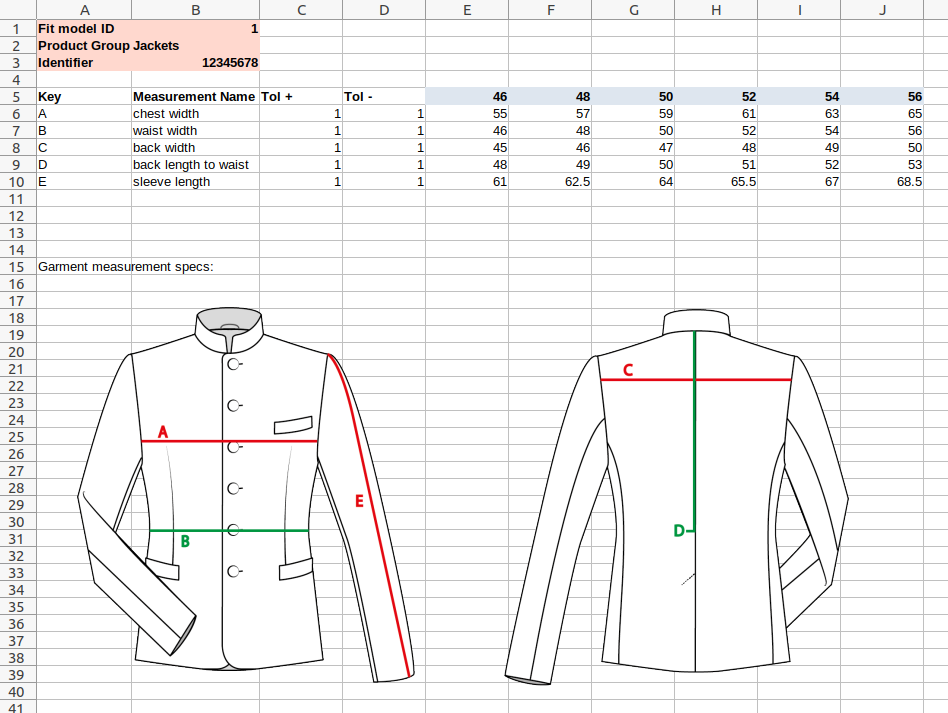 Example of a tech pack in a spreadsheet (not in the final input format)