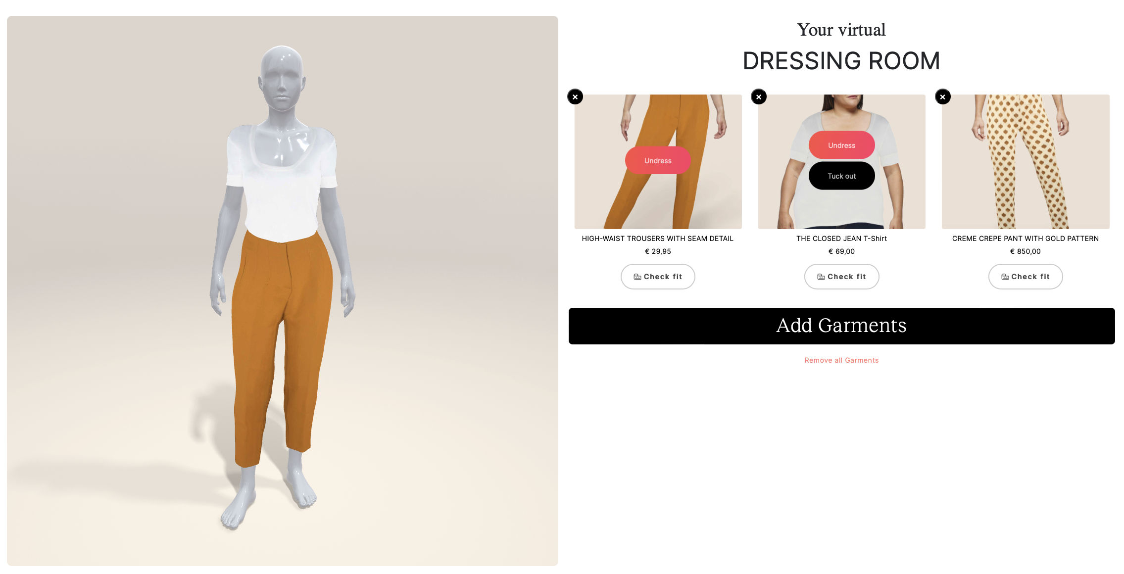 component is the easiest way to implement a virtual try-on in your web shop. It’s using leveraging the potential of a full 3D experience so that the customer can look at the product from all angles. This requires garment assets as well as personalised mannequins in 3D.